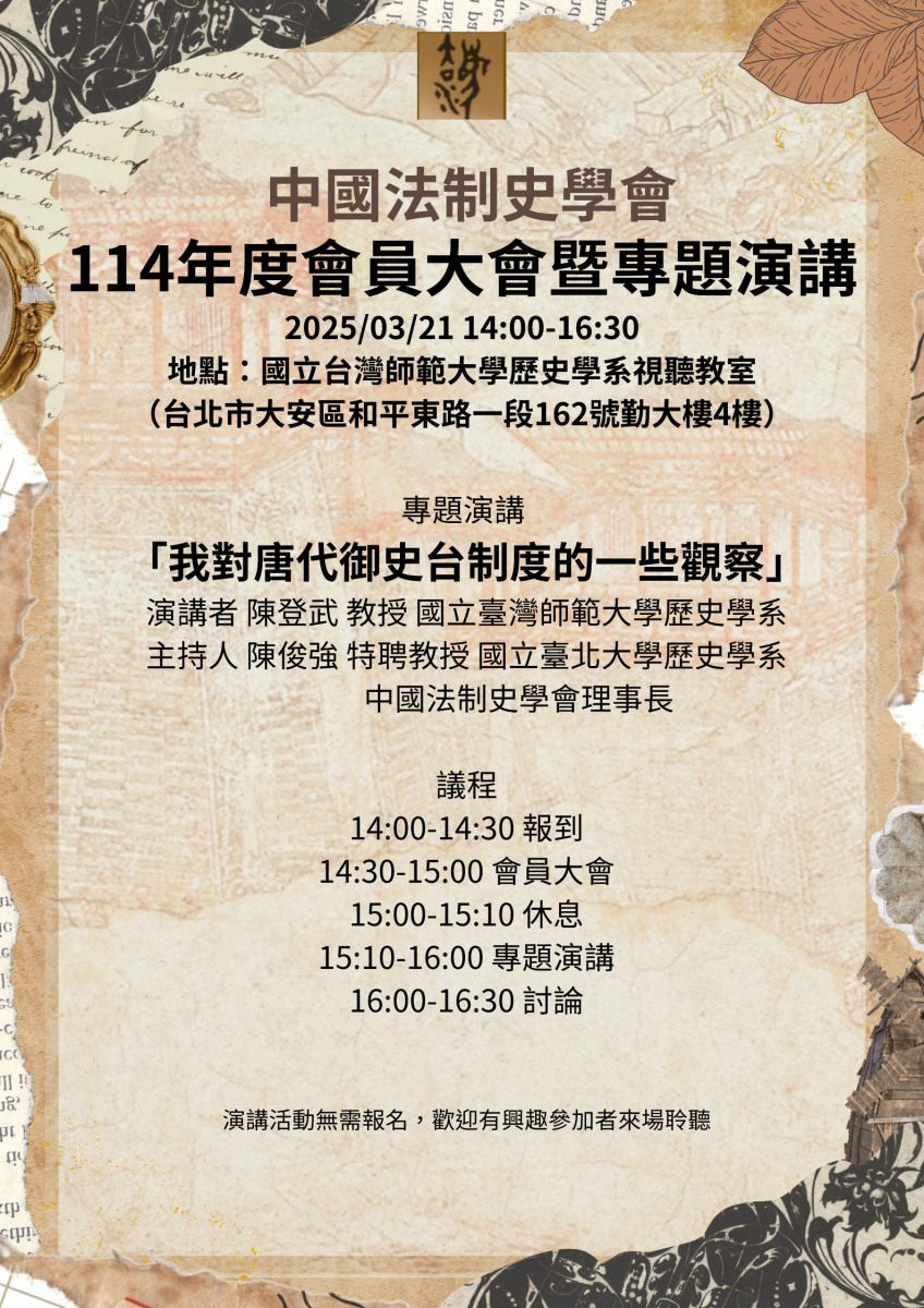 The Chinese Legal History Society (CLHS) will conduct its annual meeting on March 21 (Sat.) 2026.